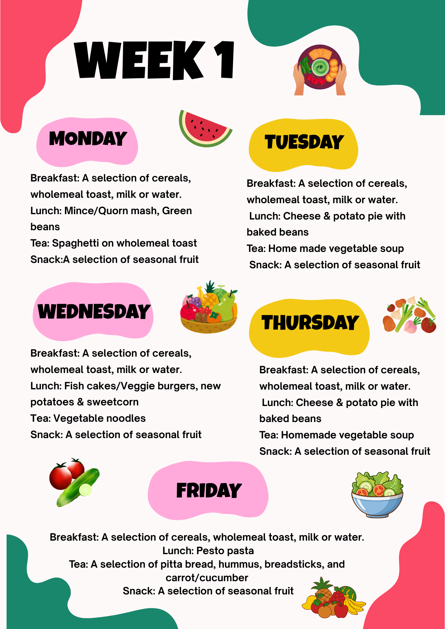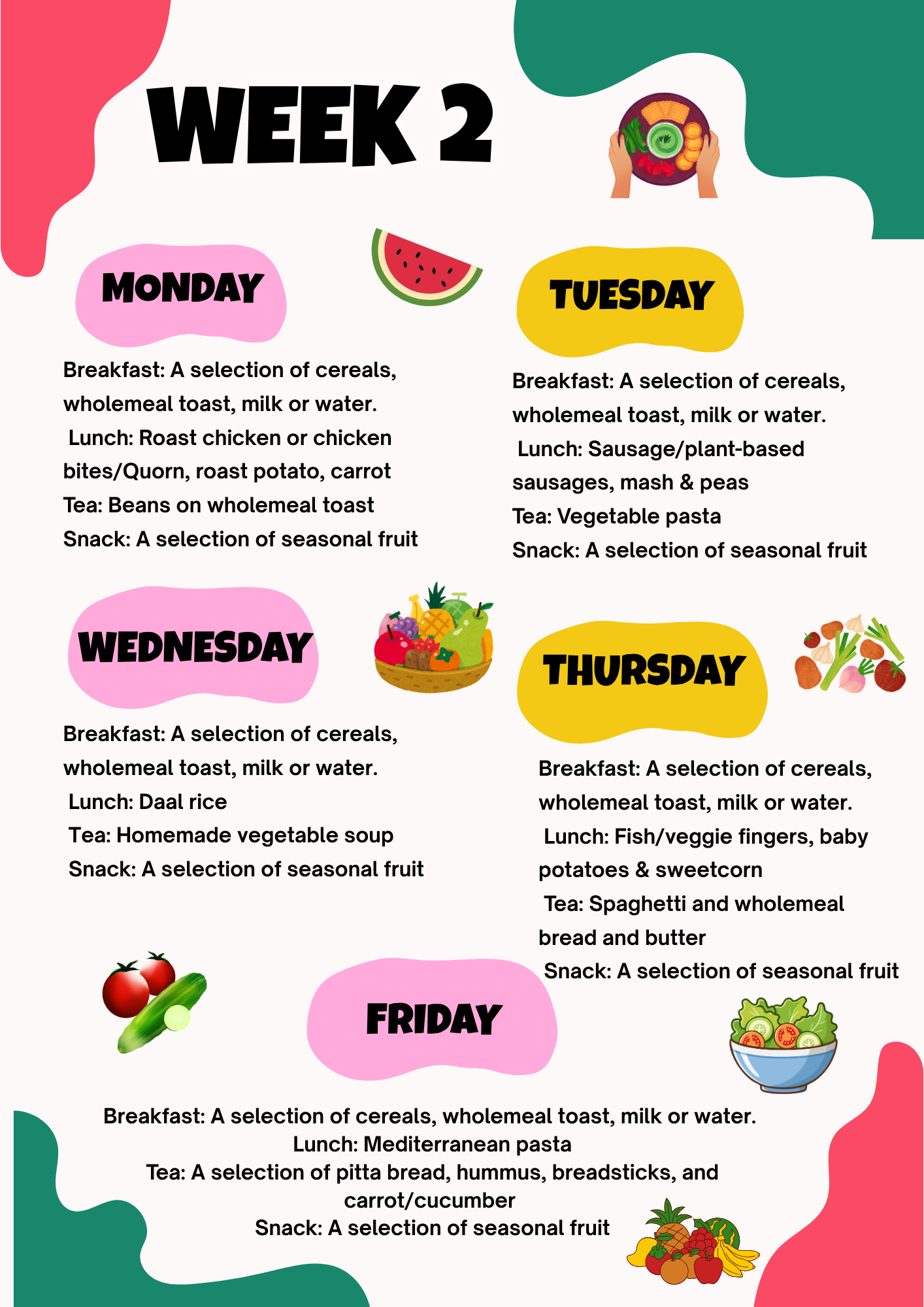 Children are offered snacks every morning and afternoon and we do not feed children cakes.